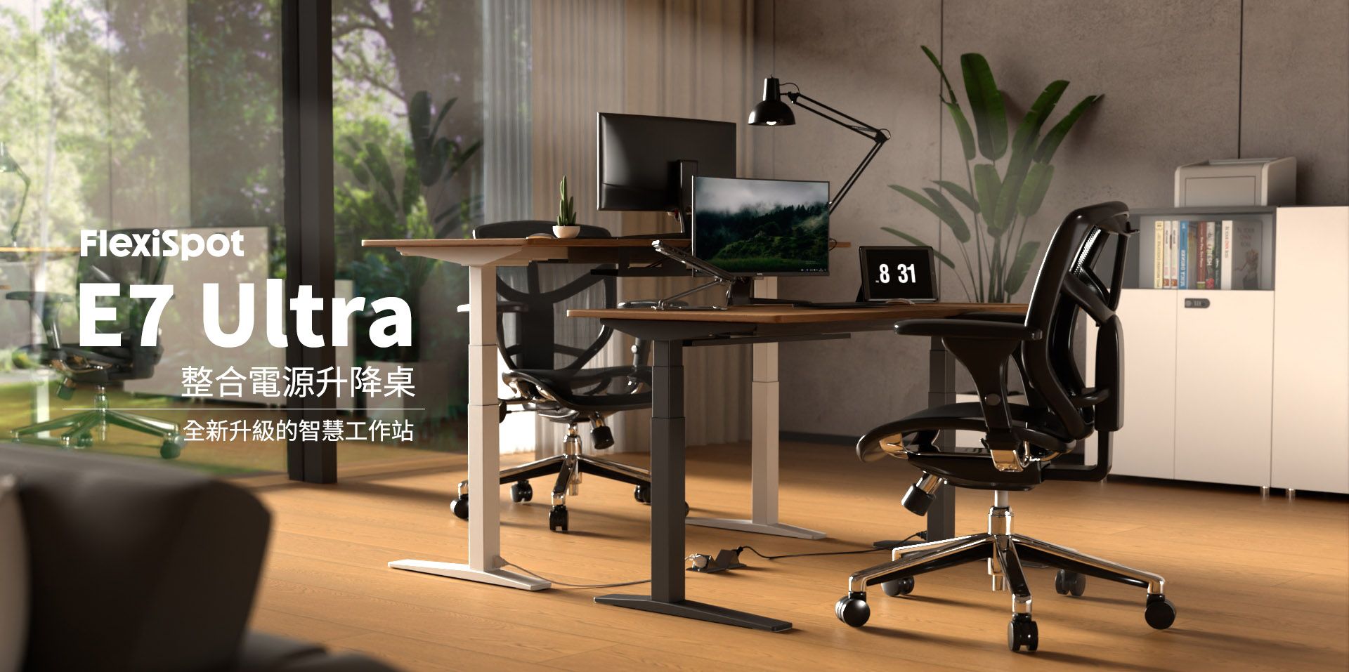E7 Ultra 以「整合電源 × 隱藏線材 × 安全升降」為核心,打造極簡有序的空間。