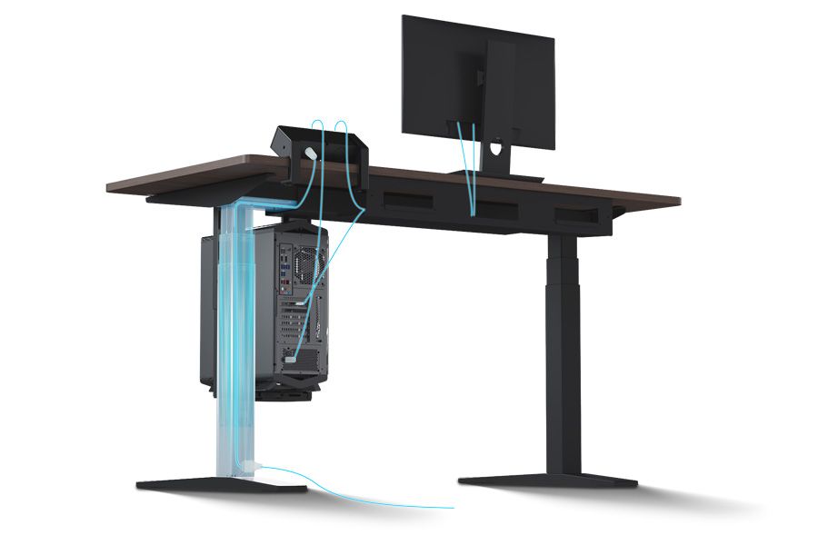 動態線纜懸掛機構讓桌子升降時線材無拉扯、不卡卡。