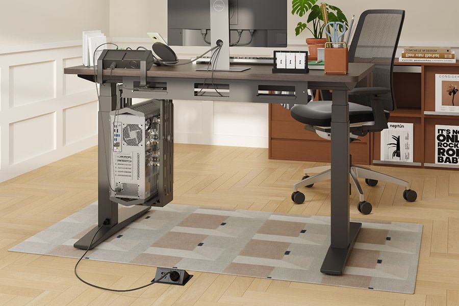 桌下設計隱藏空間,集中收納電源與線材,保持桌面整潔。