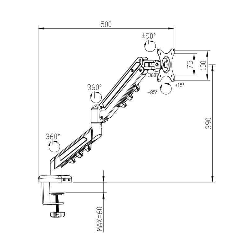 ≤ 60 mm(桌夾)/≤ 80 mm(穿孔)