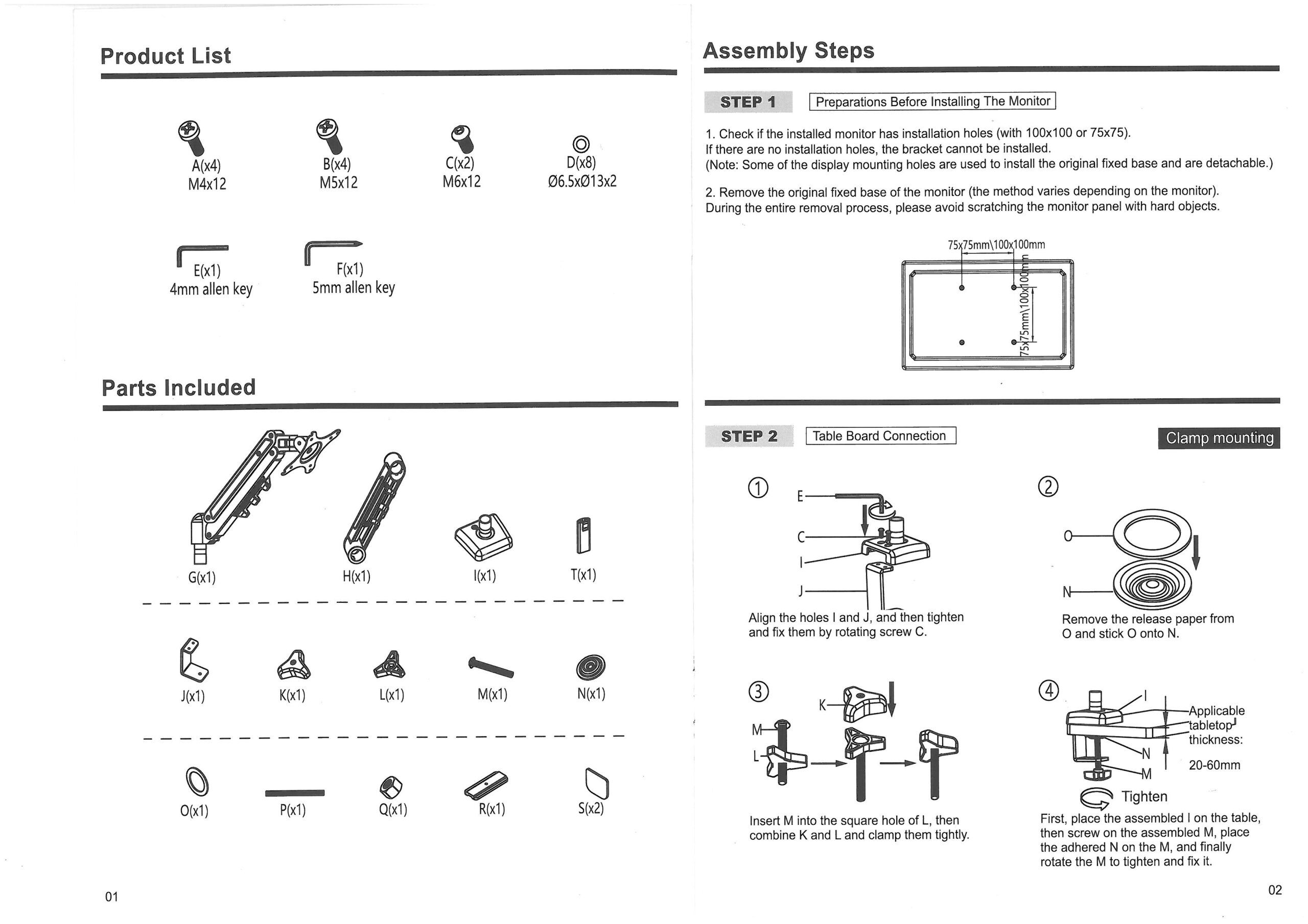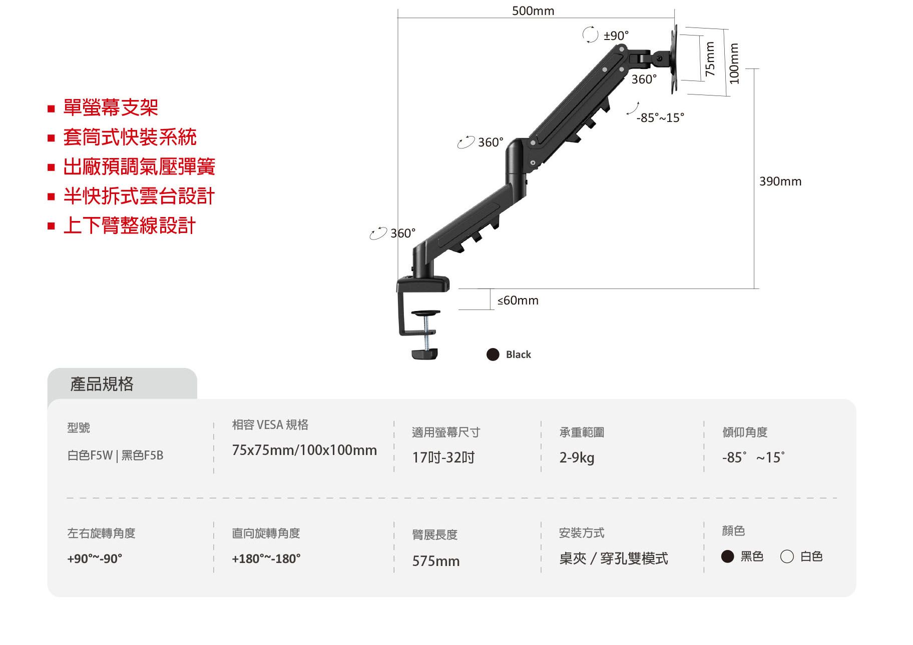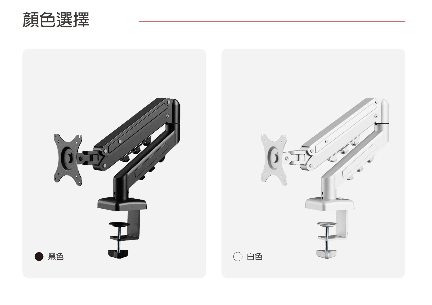 • 確認桌板厚度(桌夾式 20–60 mm;穿孔式 20–80 mm)。