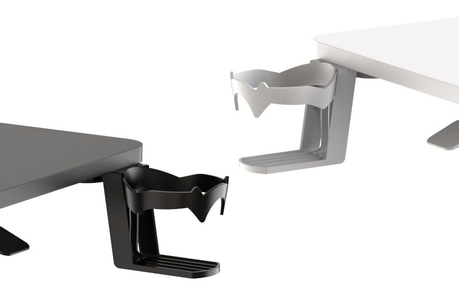 貼心設計的旋轉杯架可依個人習慣安裝於桌面左右兩側,牢固固定飲品,避免筆電作業時不慎碰撞灑出。杯架亦可拆卸收納,節省空間。