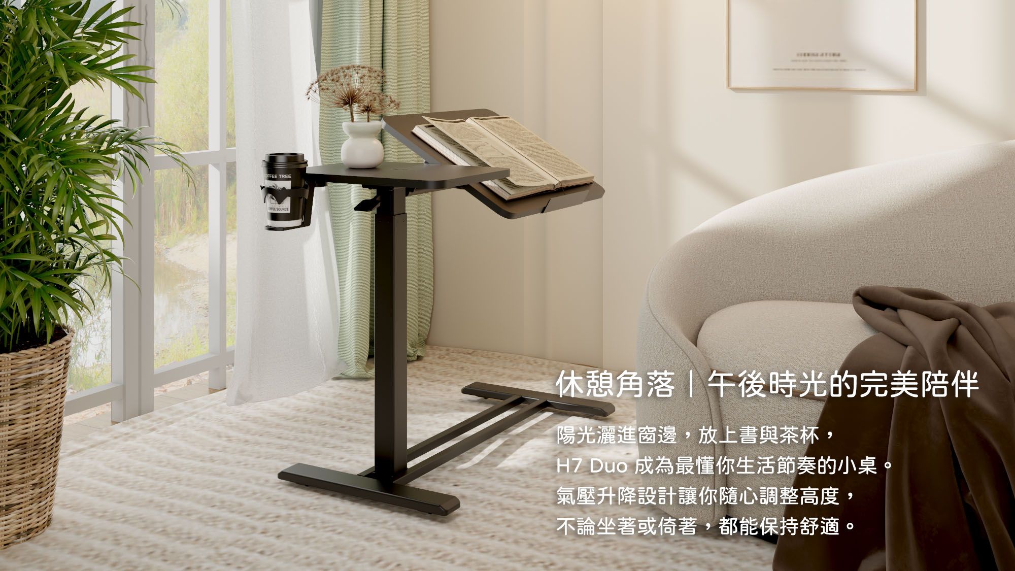 無論你是在家工作、追劇,還是想偷得片刻安靜, H7 Duo 都是最靈活的陪伴。 工作與生活不再分割,而是順著你的一舉一動, 自由升降、自由轉換。