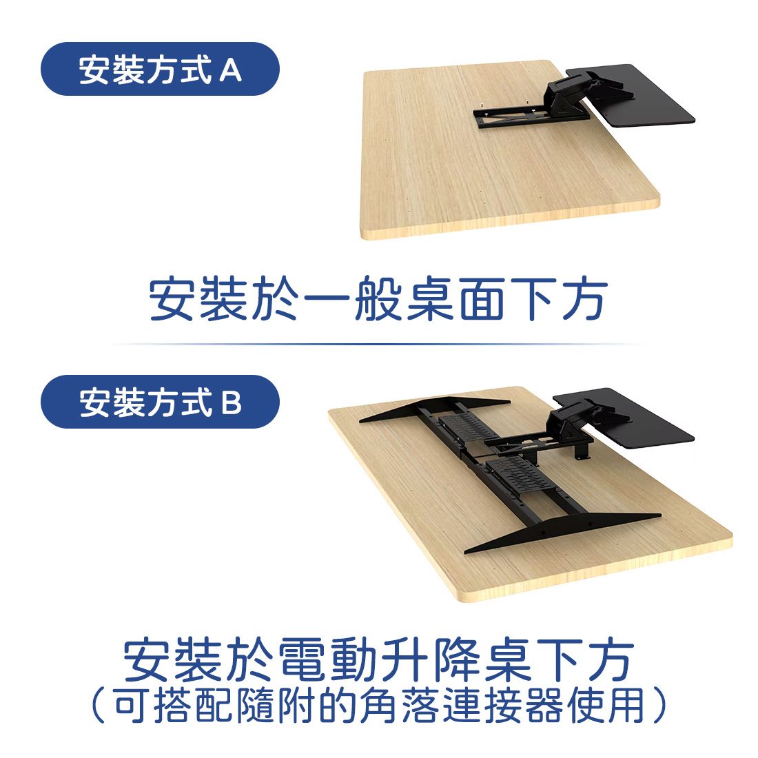 建議預留足夠桌下淨深以容納滑軌與托盤。