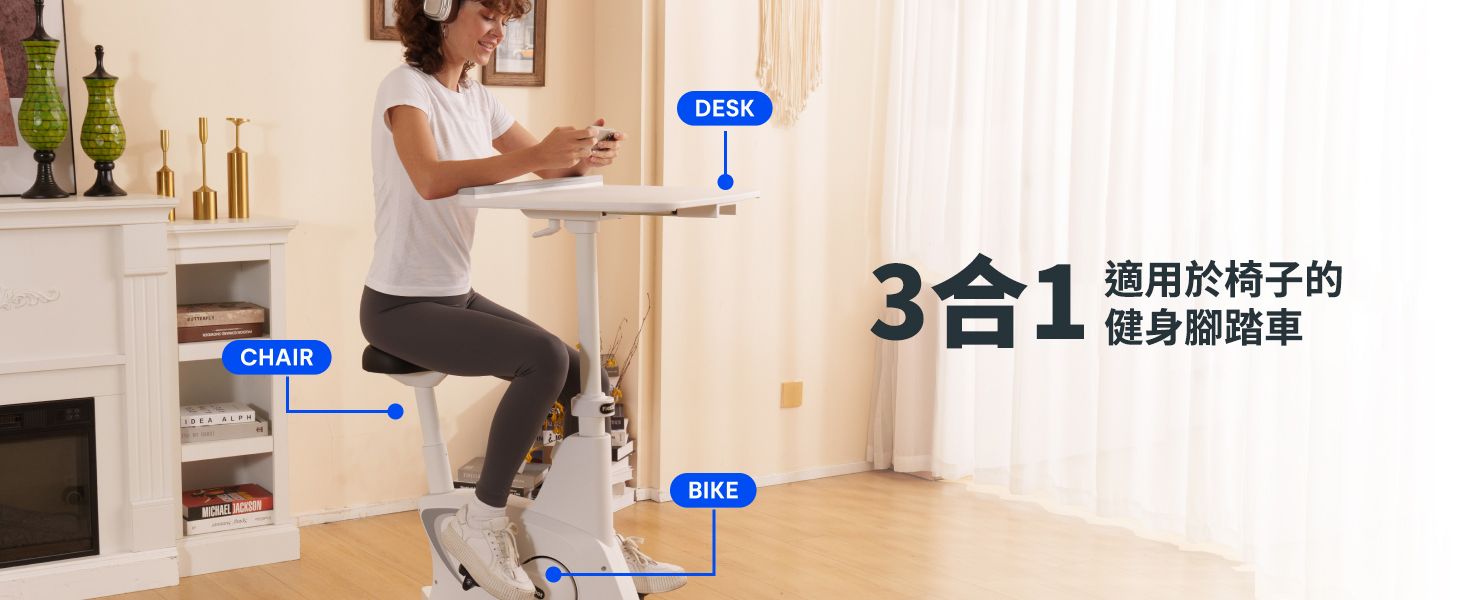 可調式座椅/桌上型,3合1運動自行車,光滑腳輪