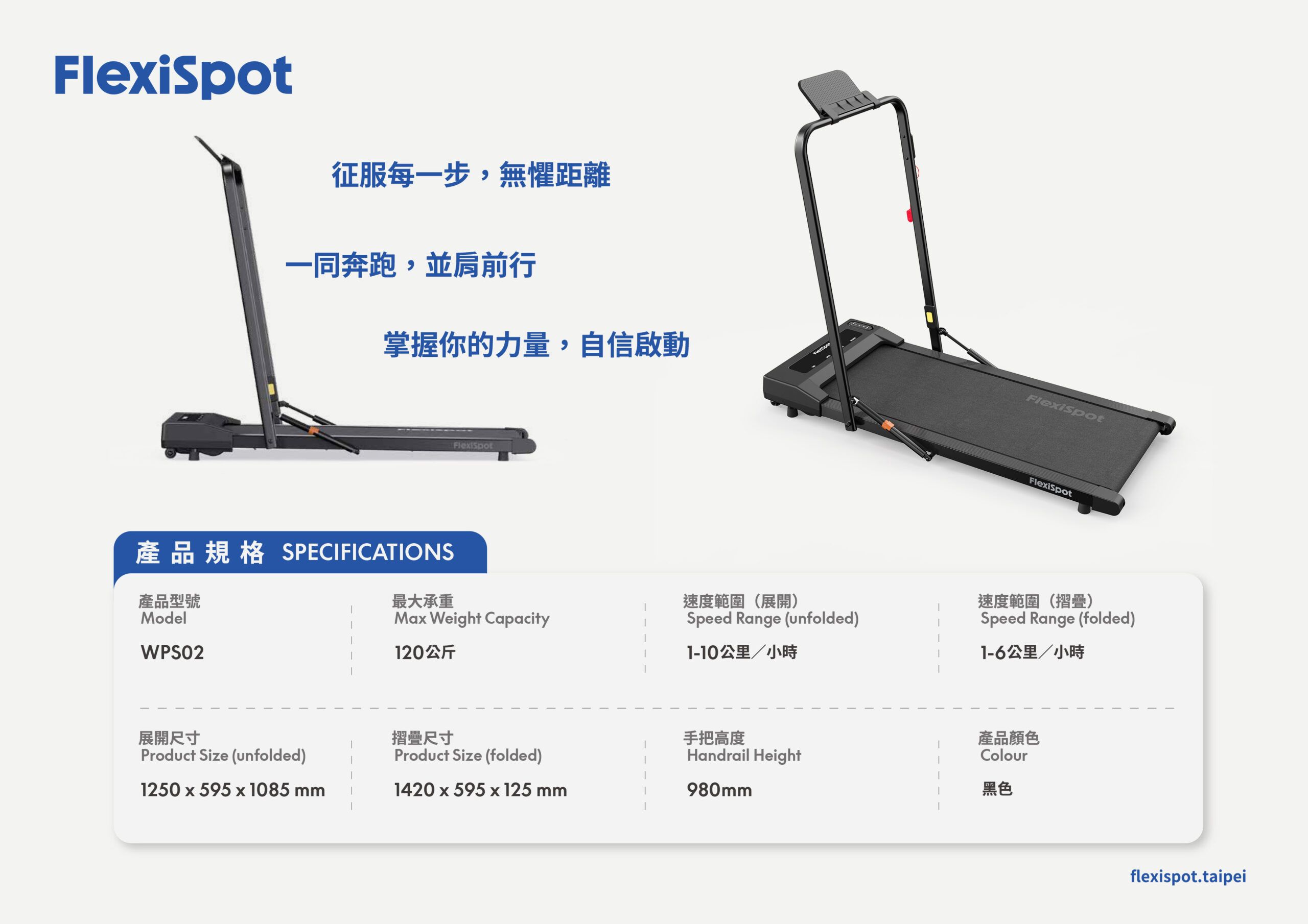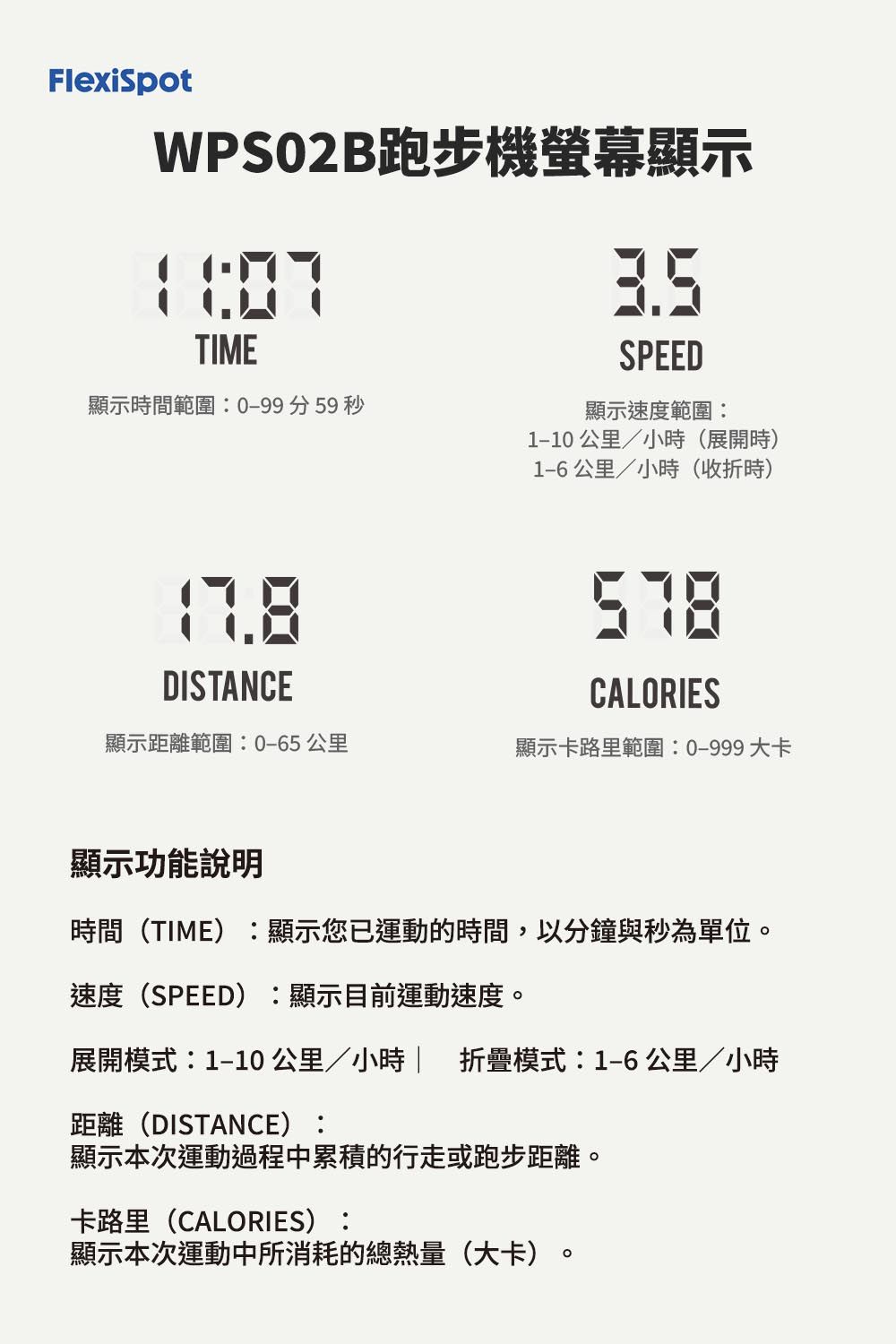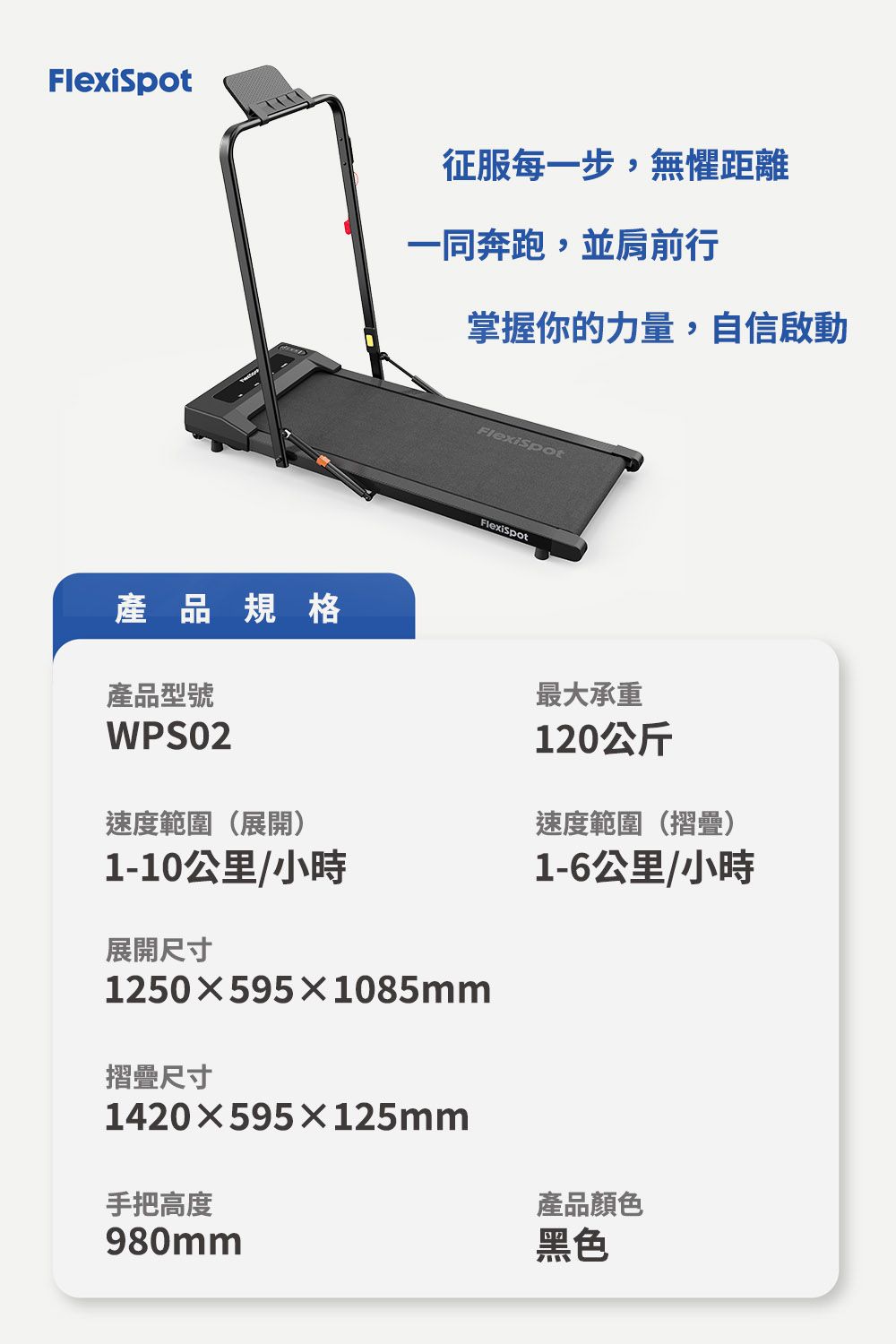 WPS02 走步機提供個人化訓練體驗,兼具高性價比。內建六段速度模式,包含慢走、模擬爬坡、競走等,滿足不同運動需求。